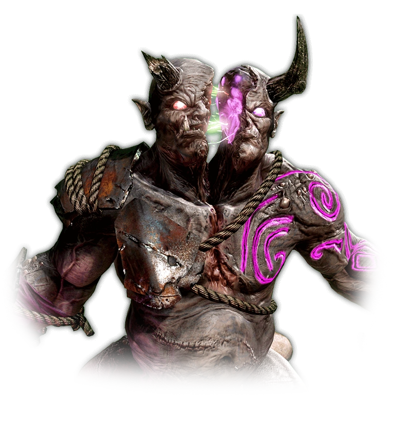 - Durante el juego, esta confusión puede evitarse mirando el Medidor de Control/Rabia de Eyedol, ya que las llamas aparecen en la mitad de su cabeza que está actualmente activa. Uno mismo también puede diferenciarlo por el color del ojo de la cabeza activa, el color de las chispas de su garrote, o la apariencia de la postura neutral de Eyedol (en posición vertical con el garrote en alto, o encorvado con el garrote en posición baja).