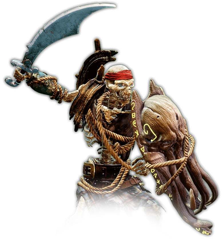 Es un hábil espadachín, que parece haber conservado toda su delicadeza con la espada y escudo de su vida pasada. Si bien esgrime armas, también posee extrañas habilidades mágicas, como la teletransportación y la manipulación de cráneos y brazos fantasmales. También puede absorber ataques de proyectil con su escudo, y luego convertirlos en sus propios ataques de fuego.
