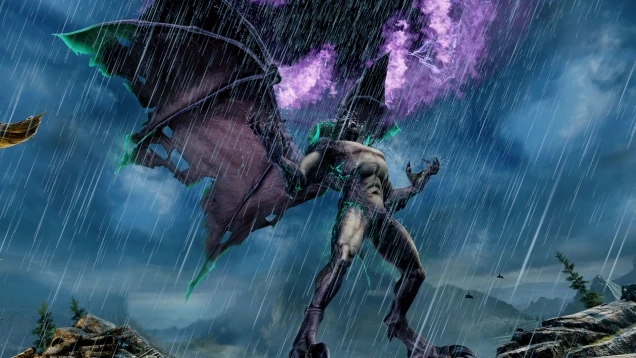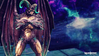 Despite his size, Gargos' wings enable him to fly great distances in order to close the gap between him and his opponent or to put distance between them. His Instinct Mode allows him to transform his entire body into pure stone, making him impervious to the impact of his opponents' attacks (i.e.: no stagger or knockdowns on light or medium attacks) but at the cost of it greatly reducing his movement. He can then "erupt" his stone skin into shards which will inflict harm to his enemy and violently knock them back.